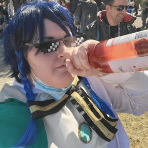 My name is Emrys and I am the feral raccoon living behind the fandom Denny's, shoving content into my gaping maw.Part-time cosplayer and fanfic writer. Full-Time menace.I've been writing in fandom spaces since 2006, but had not posted outside of RP blogs/groups for over a decade before recently being dragged back into writing fanfiction.All cosplays I wear are made by me and from scratch. Sewing (self-taught) since 2010, cosplaying since 2011.